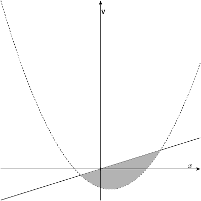 Last attempts:In the graph below, the straight line has equation $y=2x$ and the curve has equation $y=2x^{2} -2x -6$. Find the value of the shaded area.